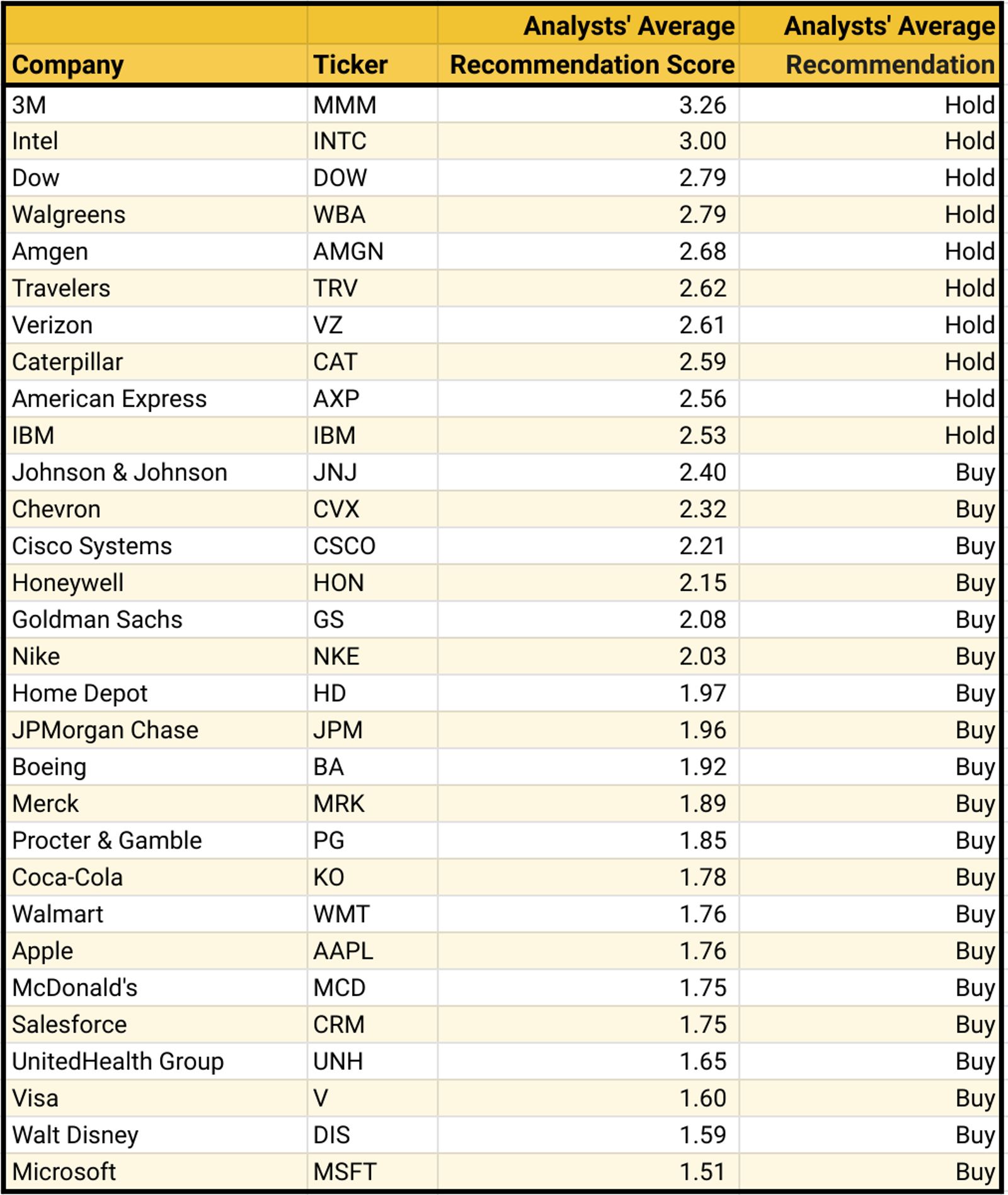 All 30 Dow Stocks Ranked: The Pros Weigh In