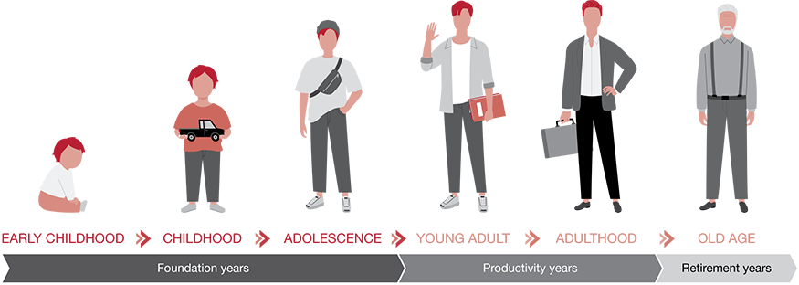 Governments need to go back to early childhood to identify the root causes of social issues and lay the foundations at an early age to help citizens transition to productivity during adulthood. Such early intervention can consequently turn citizens into contributors to the economy, while also preserving the safety net for old age. Governments must, therefore, institute policies that cover the full life-course of an individual. This approach focuses on the interdependence of all life stages as generations move from being welfare recipients during childhood and youth, to being contributors during adulthood, to recipients again during old age.
